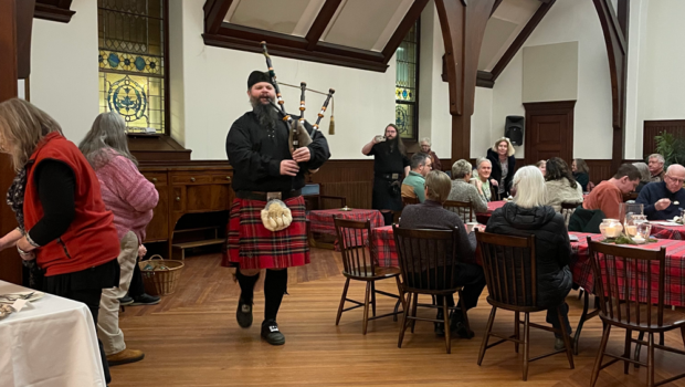 Ahead of the major weekend storm, a hardy group of 35 devotees of the Scottish poet Robert Burns gathered in Battell Chapel on Saturday, Jan. 24, for a bit of music, poetry and haggis. Ken Storrs (pictured above) piped in the guests. Andrew Thomson recited the traditional “Address to the Haggis” and word is that […]