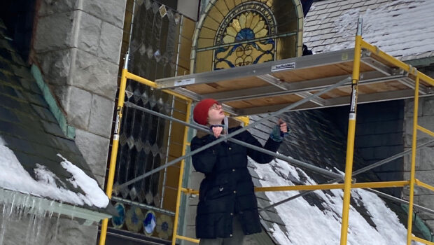 An expert team from the Glass Source Stained Glass Studio spent nearly six hours in cold mid-January weather care-fully removing a cathedral stained glass window from Battell Chapel at the United Church of Christ before transporting it to their studio in Seymour for restoration. In this photo, Michael Skrtic balances one section of the window […]
