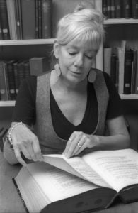 Robin Yuran peruses a genealogical text in the library’s new Rare Book Room.
