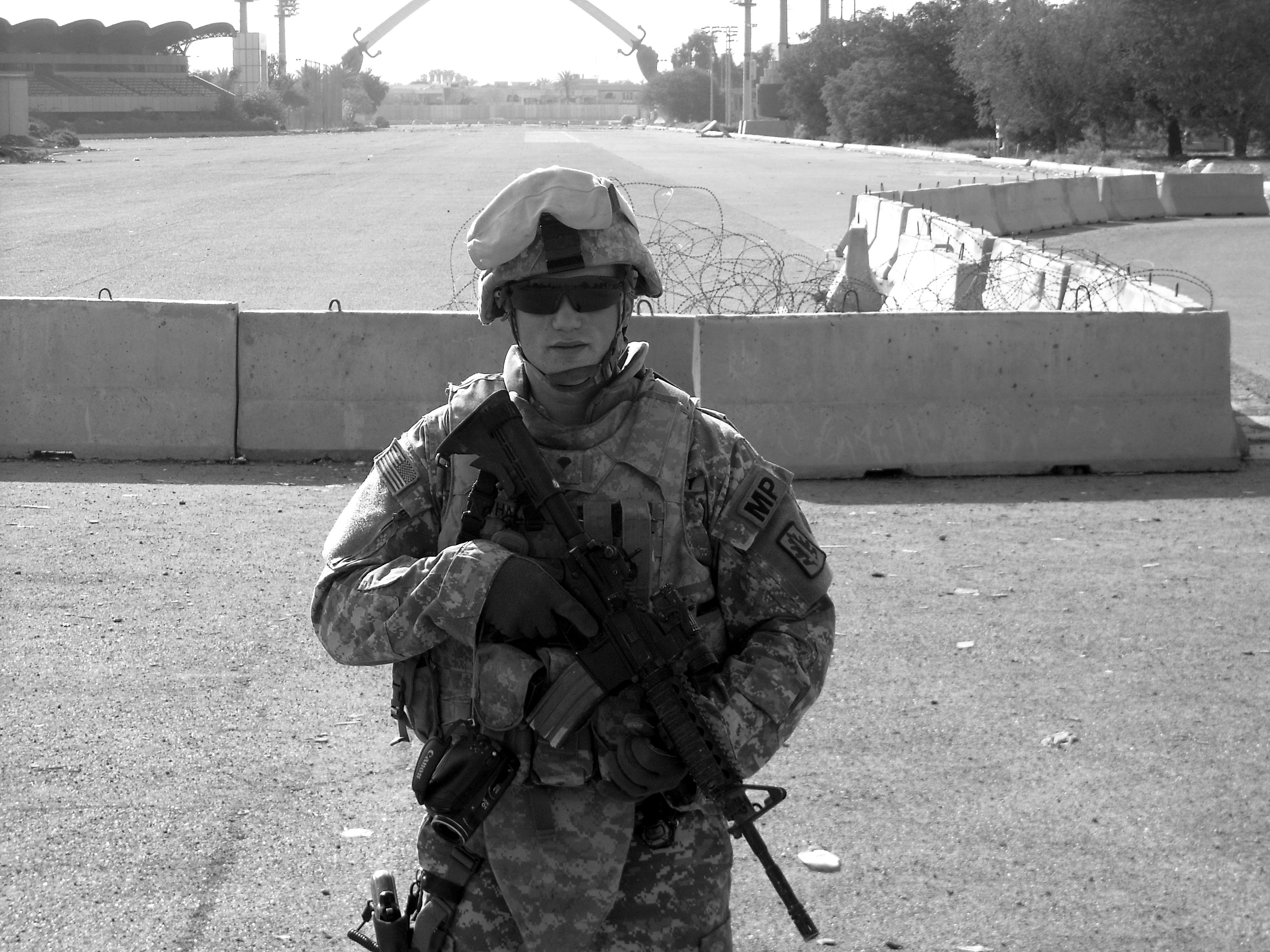 Army SPC Stephen Whalen took this photo of himself in Iraq by placing a camera on his Humvee and setting the timer.