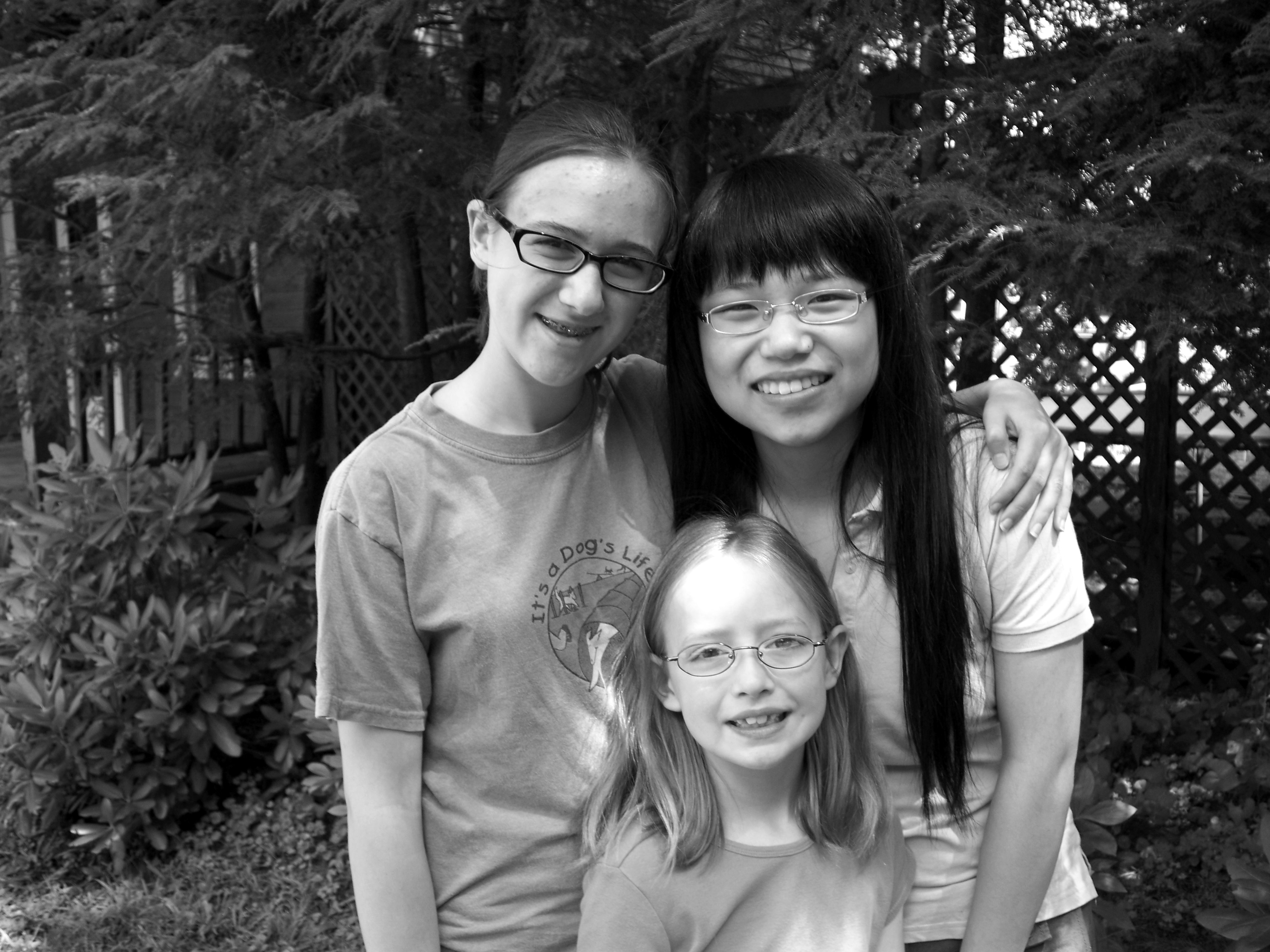 Chinese exchange student Yini (Claire) Wu poses with her American “sisters”, Celeste and Janelle Menard.
