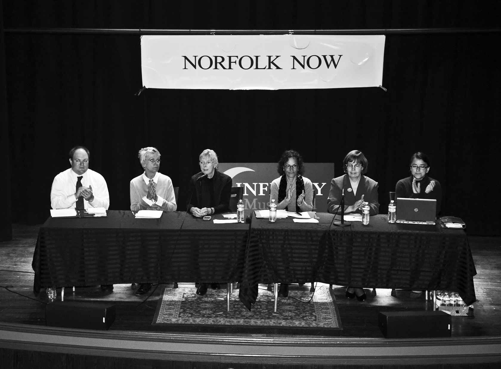 Norfolk Now President Veronica Burns presided, along with three executive editors who posed one question a piece before inviting queries from the audience. Local Infinity Hall staff oversaw the sound system and the hall was offered at no charge by Infinity owner Dan Hincks.