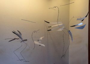 The colorful, delicate, dancing mobiles—of cranes, a hummingbird, a whale, a shark, a dragon—have delighted everyone who’s seen them. Robinson’s background as a biologist is reflected in his subject matter, and his interest in Alexander Calder and Asian art is revealed by the delicacy and grace, humor and whimsy, of his work. Robinson’s mobiles are in several private collections, and a major piece was hung in Hartford Hospital in 1998.