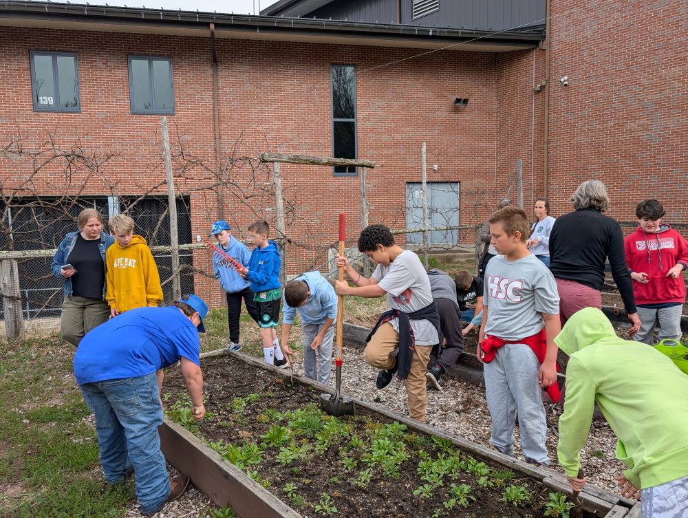 Vicki Nelson, a retired science educator who works at Great Mountain Forest, met students in the Community Garden. A coconut, sprouted acorn, various fruits and other examples of seeds were spread out on tables to teach students about seed dispersal. Chloe Bottum, a fourth grader, thought the life cycle of trees was interesting. She said, “Seeds fall off the tree. If the seeds get enough light and water they sprout into new trees. It (the seed) dissolves into the ground and they grow into another apple tree.” Later, students planted flower and vegetable seeds in the garden. We can’t wait to see them grow!