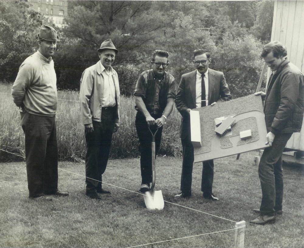 With a new firehouse proposed for Norfolk, here’s a look back at the ground-breaking ceremony for the Shepard Road firehouse on June 6, 1970. Fire Chief Martin O’Connor takes the first dig. Also pictured are (from left): Peter Mulville (builder), Walter Allyn (Selectman), O’Connor, Robin Mead (Chairman of the Building Committee), and Russell Childs (architect). The need for larger quarters had become particularly pressing when the department’s new fire engine would not fit in the original firehouse in the Royal Arcanum building and had to be housed in a barn on Emerson Street.