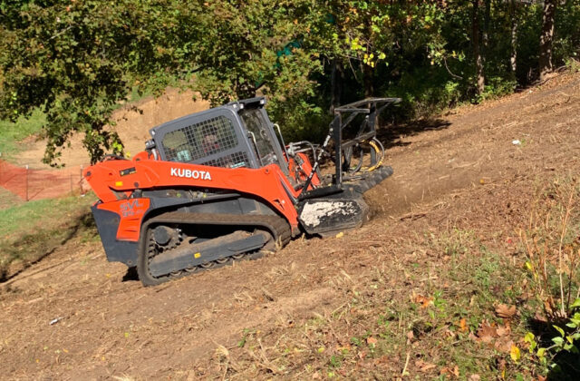 Norfolk contractor Phillip Lovett volunteered a day of his time and equipment to clear a steep bank at Botelle Elementary School infested with a tangle of bittersweet, porcelain berry, Japanese honeysuckle and multiflora rose—among other invasive plants. It was part of the Conservation Commission’s all-out effort to tame invasives across Norfolk. A team from Native Habitat Restoration, the Stockbridge, Mass., company that has also worked in City Meadow, sprayed patches of mugwort at the town garage, a large stand of knotweed at Center Cemetery and other areas in town, including the Haystack Woods affordable housing community and Blackberry Street. Commission member Becky Eaton said a team of volunteers returned to Botelle on Sunday, Oct. 19, to tackle areas Lovett could not reach with his machine. She noted that it would take some time for the efforts to become visible. The work was supported through the commission budget, as well as property owners.