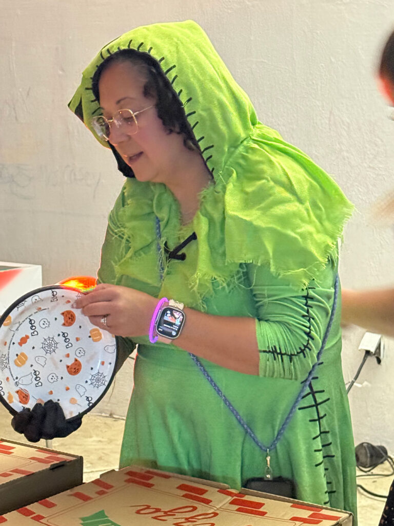Spooktacular: Members of the Botelle Elementary School PTO served up slices of pizza (a costumed Jennifer Harrington among them) and other snacks while students and younger children played a variety of games.
