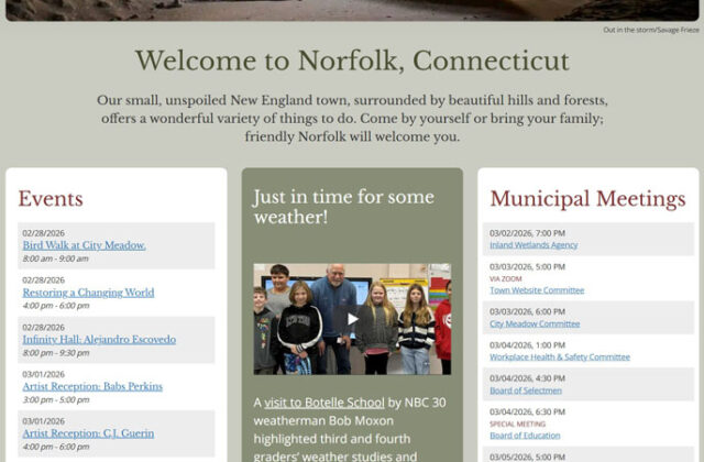 “The website truly is a network of interrelated pages,” said Frisch. “There is a link for everything and a total wealth of information.” Freelance writer Kathryn Boughton is writing stories for the town’s email newsletter and these stories are linked into the website. Frisch is serving as webmaster, updating the pages as needed. “We are always looking for ways to improve and for people to help with the site,” said Frisch. Anyone with interest in commenting or submitting ideas is welcome to contact Frisch at webmaster@norfolkct.org.